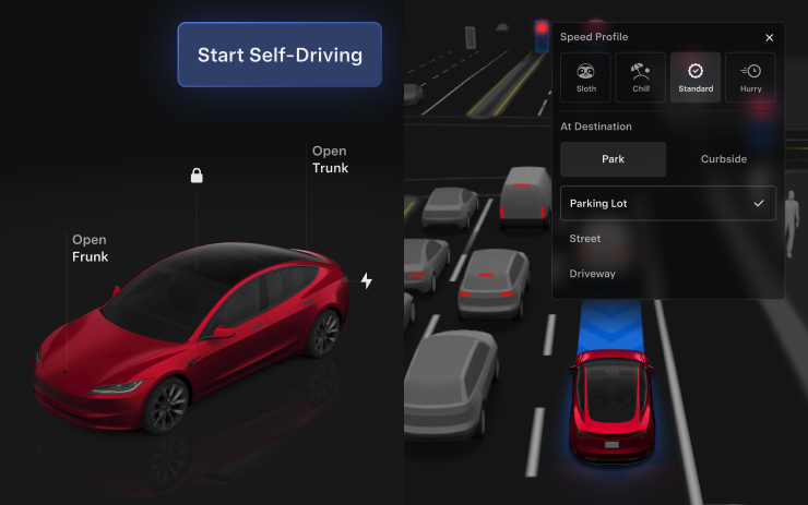 - 新增抵達選項,讓您選擇 FSD 的停車地點:停車場、街道、車道、停車庫或路邊。